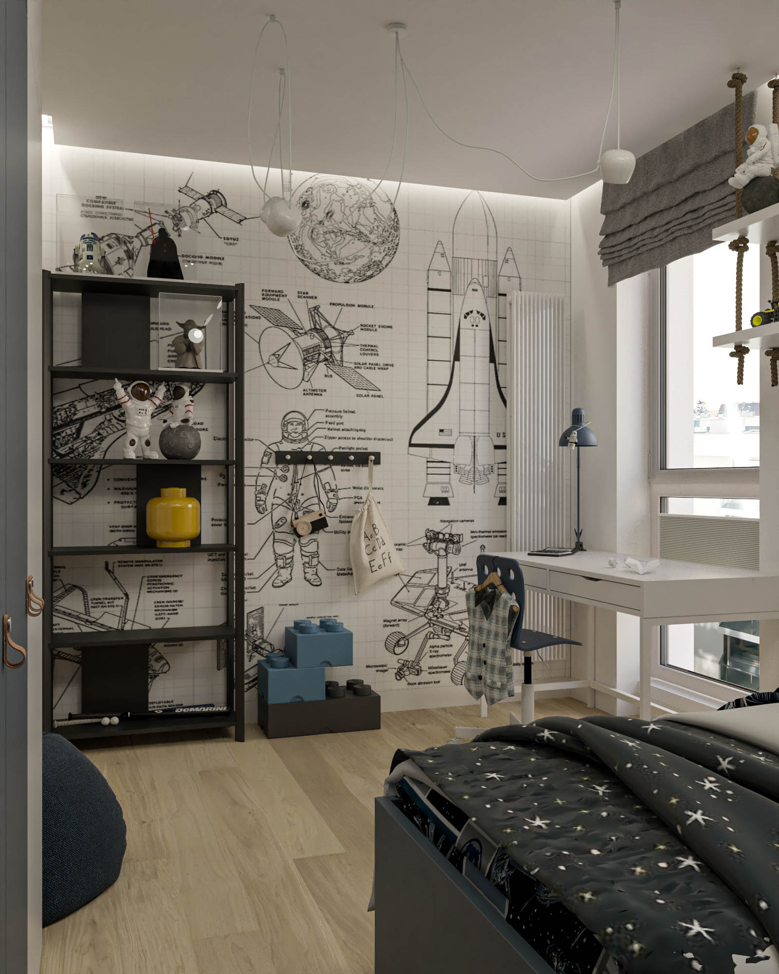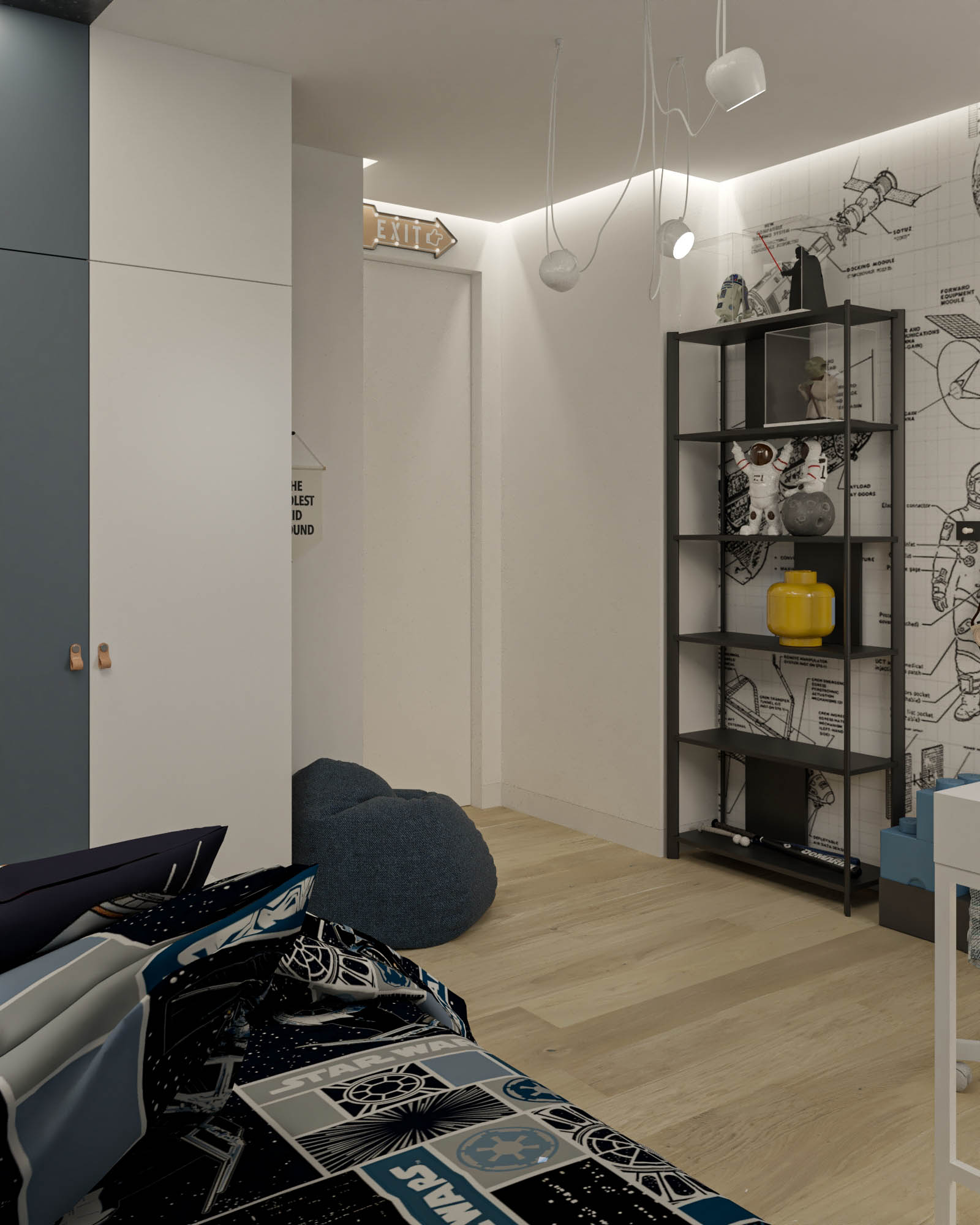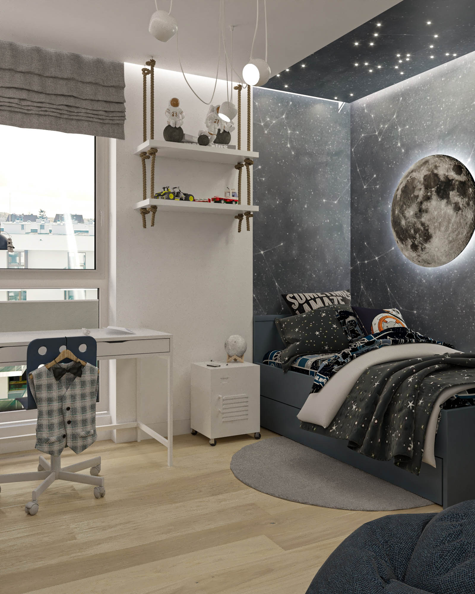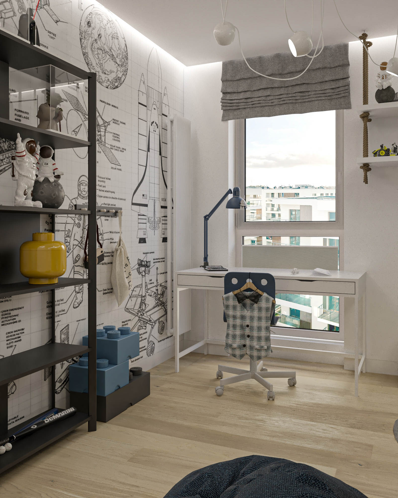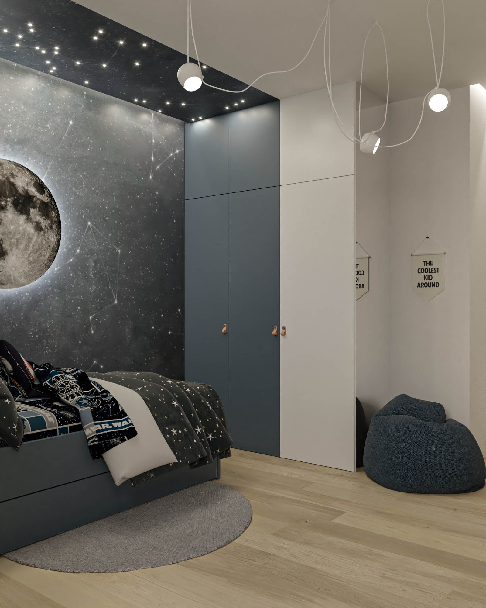 Mieszkanie zaprojektowano w nowoczesnym stylu, opartym na szlachetnych i trwałych materiałach. We wnętrzu zastosowano konglomerat kwarcowy, naturalne drewno na podłodze oraz wysokiej jakości włoską armaturę, które wspólnie budują elegancki i dopracowany charakter przestrzeni. Kolorystyka bazuje na złamanych bielach, ciepłych beżach i odcieniach błękitu oraz granatu. Ta spokojna paleta barw subtelnie nawiązuje do marynistycznego klimatu, wprowadzając do wnętrza świeżość i lekkość. Istotnym motywem kompozycyjnym są miękkie zaoblenia – widoczne w zabudowach stolarskich, lustrach i detalach mebli. Łagodzą one geometryczną prostotę brył, nadając wnętrzu lekkości i płynności. Całość łączy funkcjonalność z elegancją, tworząc harmonijną przestrzeń o wyraźnie dopracowanym, współczesnym charakterze.