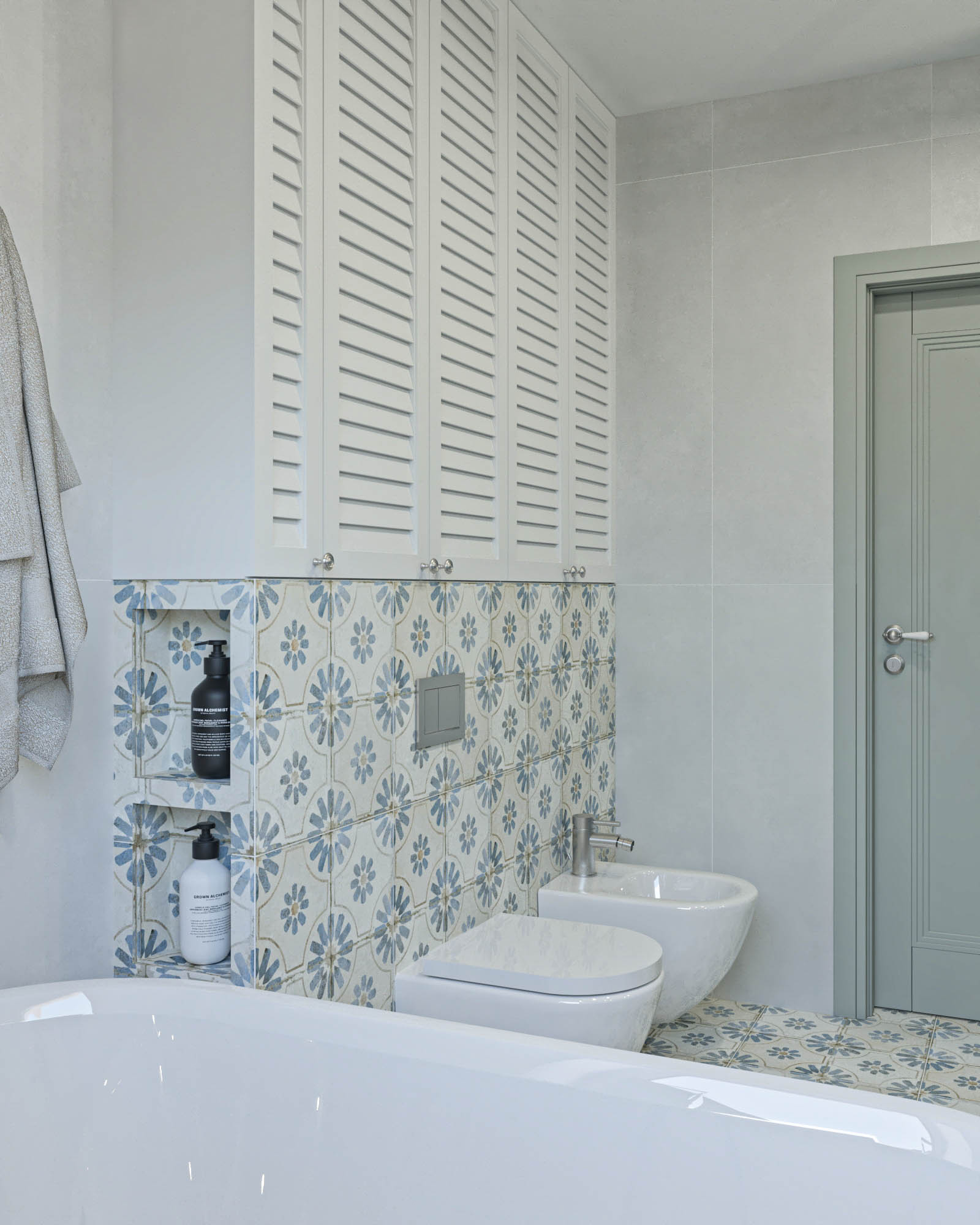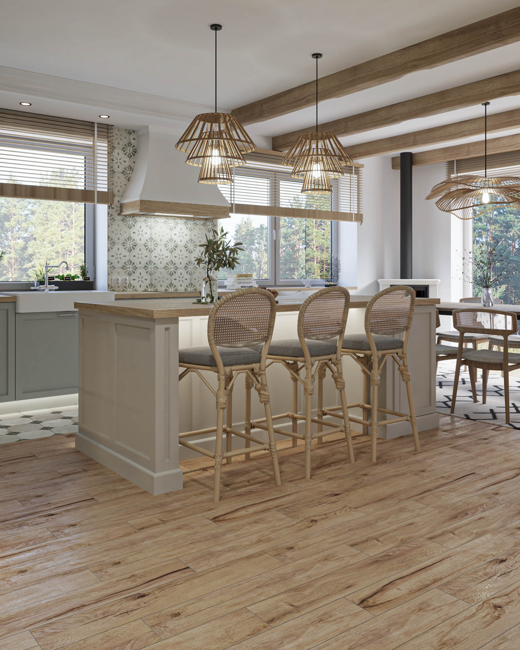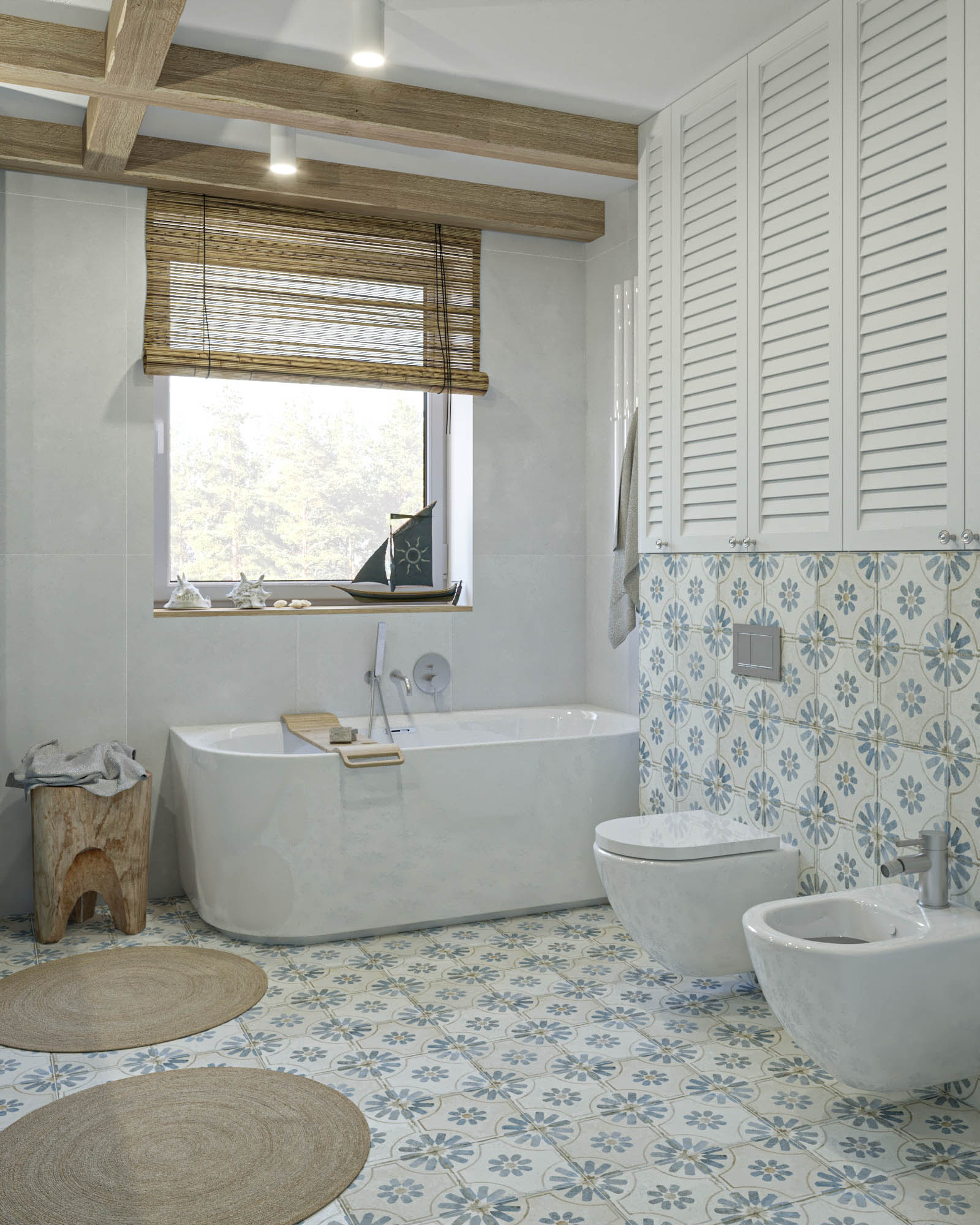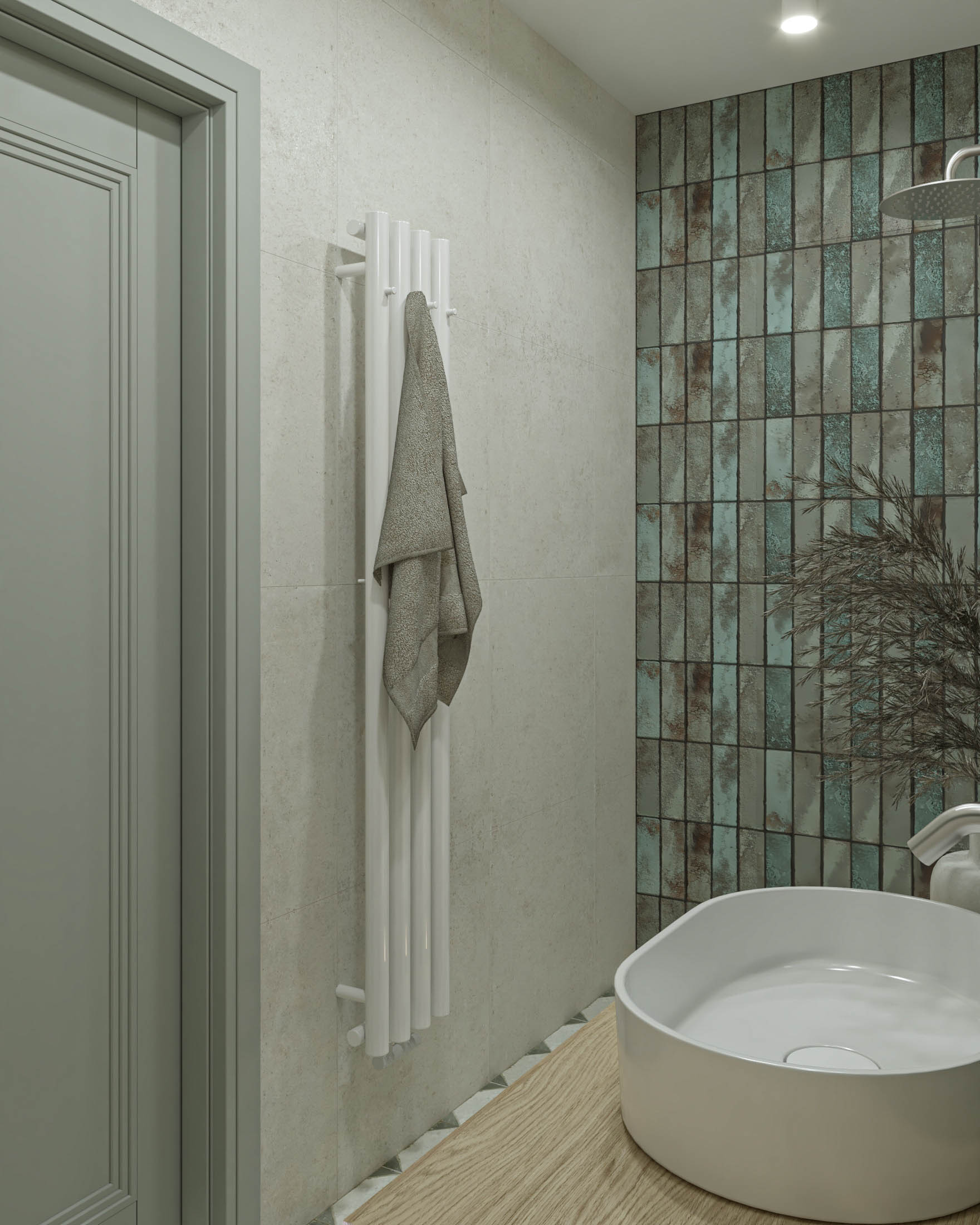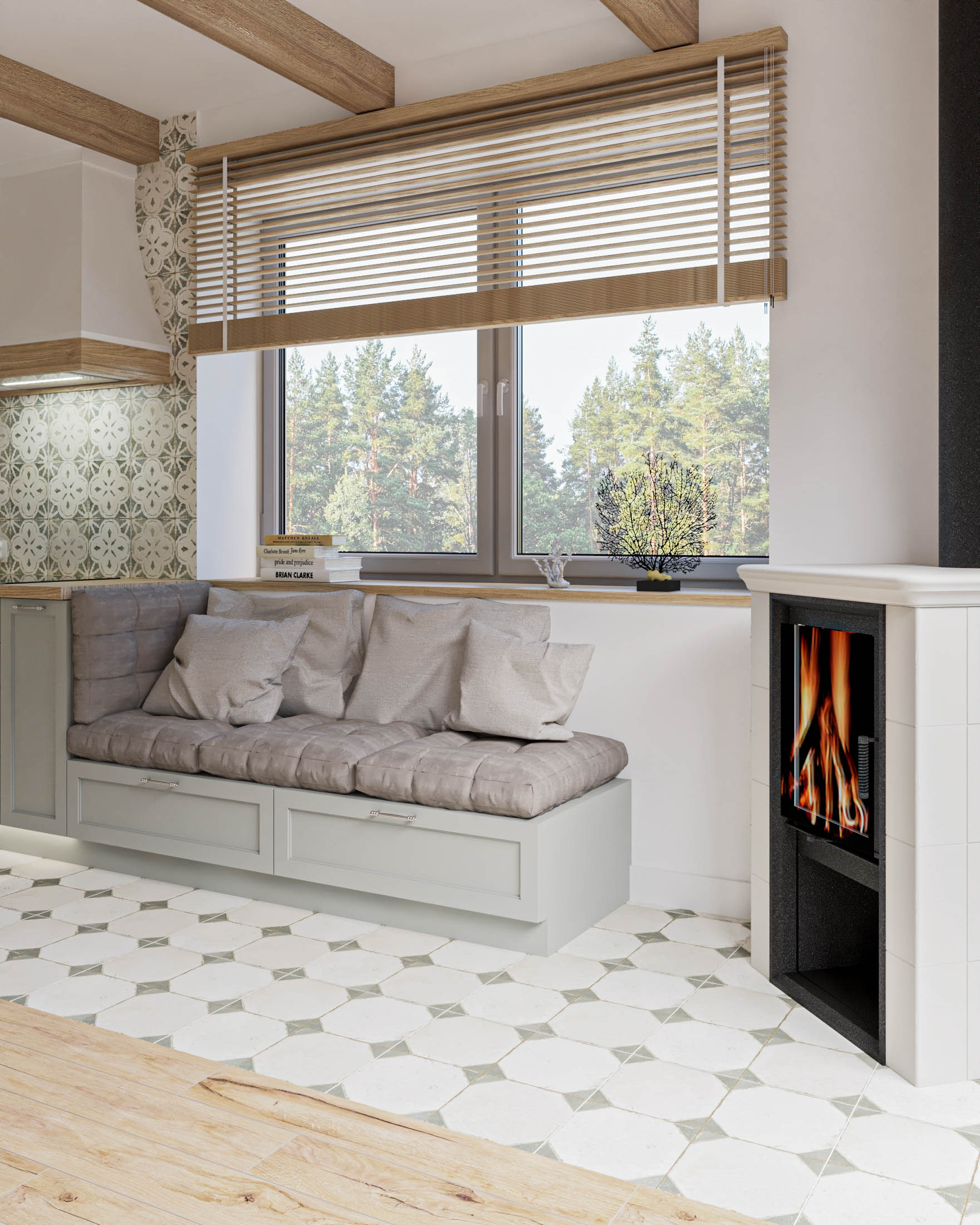 Dom został zaprojektowany w stylu śródziemnomorskim, przełamany lekkością i naturalnością estetyki boho. Jasna, naturalna paleta barw – beże, złamane biele, szałwiowa zieleń i przygaszone błękity – buduje spokojną, harmonijną atmosferę inspirowaną naturą i nadmorskim krajobrazem. Drewno, rattan, plecionki i miękkie tkaniny nadają przestrzeni ciepło oraz przytulność, a powtarzalność materiałów w całym domu zapewnia spójność kompozycji. To elegancki, ale swobodny dom, w którym nowoczesność łączy się z wakacyjną lekkością.